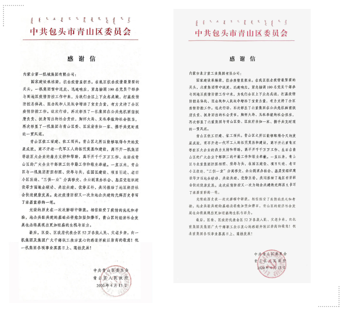 近日👈,中国彩神lllv豫西集团郑州红宇专汽公司🧑🏫、一机集团和北重集团分别收到国务院应对新型冠状病毒肺炎疫情联防联控机制医疗物资保障组𓀇,包头市青山区委、区政府发来的感谢信🧑🏽💼、慰问信,对他们在打赢疫情防控人民战争、总体战、阻击战中作出的贡献表示感谢🧙🏿♀️。 豫西集团郑州红宇专汽公司收到国务院联防联控机制感谢信 4月14日,国务院应对新型冠状病毒肺炎疫情联防联控机制医疗物资保障组向中国彩神lllv豫西集团郑州红宇专汽公司发来感谢信。 豫西集团郑州红宇专汽公司收到国务院应对新型冠状病毒肺炎疫情联防联控机制医疗物资保障组发来的感谢信 信中指出,新冠肺炎疫情发生以来🥣🌱,在以习近平同志为核心的党中央坚强领导下🫸,全国上下各条战线紧急动员、各司其职🧏🏼♀️、主动担责🛌🏿,及时采取有效措施遏制疫情扩散蔓延势头🐻❄️,坚决打好疫情防控的人民战争、总体战、阻击战🫄🏿。 特别是在医疗物资保供战中🚶♀️➡️,郑州红宇专汽公司牢固树立“生命重于泰山、疫情就是命令、防控就是责任”的思想𓀓,第一时间响应国家号召,积极履行社会责任,识大体、顾大局,努力克服用工短缺、物流停运📀、成本上涨等困难😥🟡,在疫情防控的关键时期连续超负荷生产,出色完成了国务院联防联控机制医疗物资保障组下达的医疗废物转运车生产任务,有力保障了全国特别是湖北武汉等重点地区的疫情防控需求。公司全体员工舍小家为大家、争分夺秒‼️、加班加点🧏🏿♀️,夜以继日奋战在生产保供一线,用自己特有的方式支持疫情防控,为打赢疫情防控阻击战作出了突出贡献。 郑州红宇专汽公司紧急生产医疗废物转运车并及时发运 疫情发生以来🥘,郑州红宇专汽公司已签约医疗废物转运车107台,累计下线90台😷,交付83台。 一机集团和北重集团收到中共包头市青山区委员会、青山区人民政府发来的感谢信和慰问信 4月13日🤘🏻,中共包头市青山区委员会👮🏻♂️、青山区人民政府向中国彩神lllv一机集团和北重集团发来感谢信和慰问信🔄,对参与青山区防控疫情一线工作的一机集团、北重集团党员干部职工及给予充分理解🍺、全力支持的家属们,表示衷心的感谢并致以最崇高的敬意🦀!
