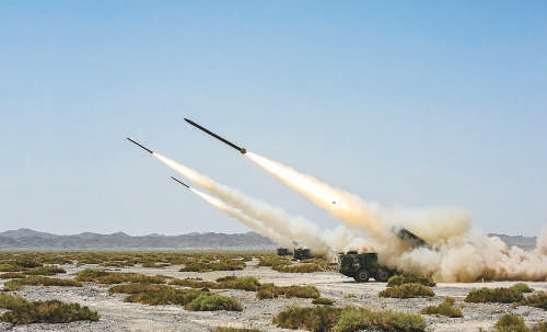 ▲某集团军炮兵旅远火营使用远程多管火箭炮进行实战化训练
